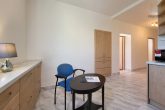 Nachází v 1NP cihlového rohového domu. Když vstoupíte vchodovými dveřmi, ocitnete se v prostorné chodbě, ze které se dostanete do všech místností. Všechny místnosti v bytě jsou odděleny samostatnými vstupy. Byt je po celkové rekonstrukci – elektřina, nové podlahy a parkety v obývacím pokoji, koupelna se sprchovým koutem a samostatné wc. Jako bonus je v bytě technická místnost, kterou můžete využít i jako šatnu. Kuchyň je vybavena vestavnými spotřebiči – elektrická trouba, lednice, myčka, pračka a plynový sporák. Okna v kuchyni jsou situovány na severovýchod, oba pokoje a balkón na jihovýchod.