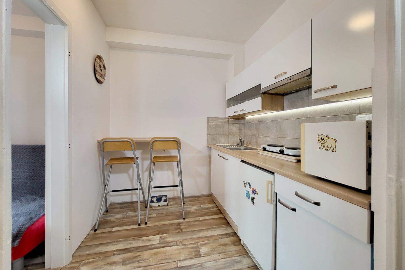 Nabízíme k prodeji přízemní byt o dispozici 2+kk, který je součástí panelového domu na sídlišti Vinohrady v Brně. Tento byt se nachází ve velmi žádané lokalitě a má unikátní přidanou hodnotu – součástí je také nebytový prostor, který lze využít k podnikání nebo jako sklad.