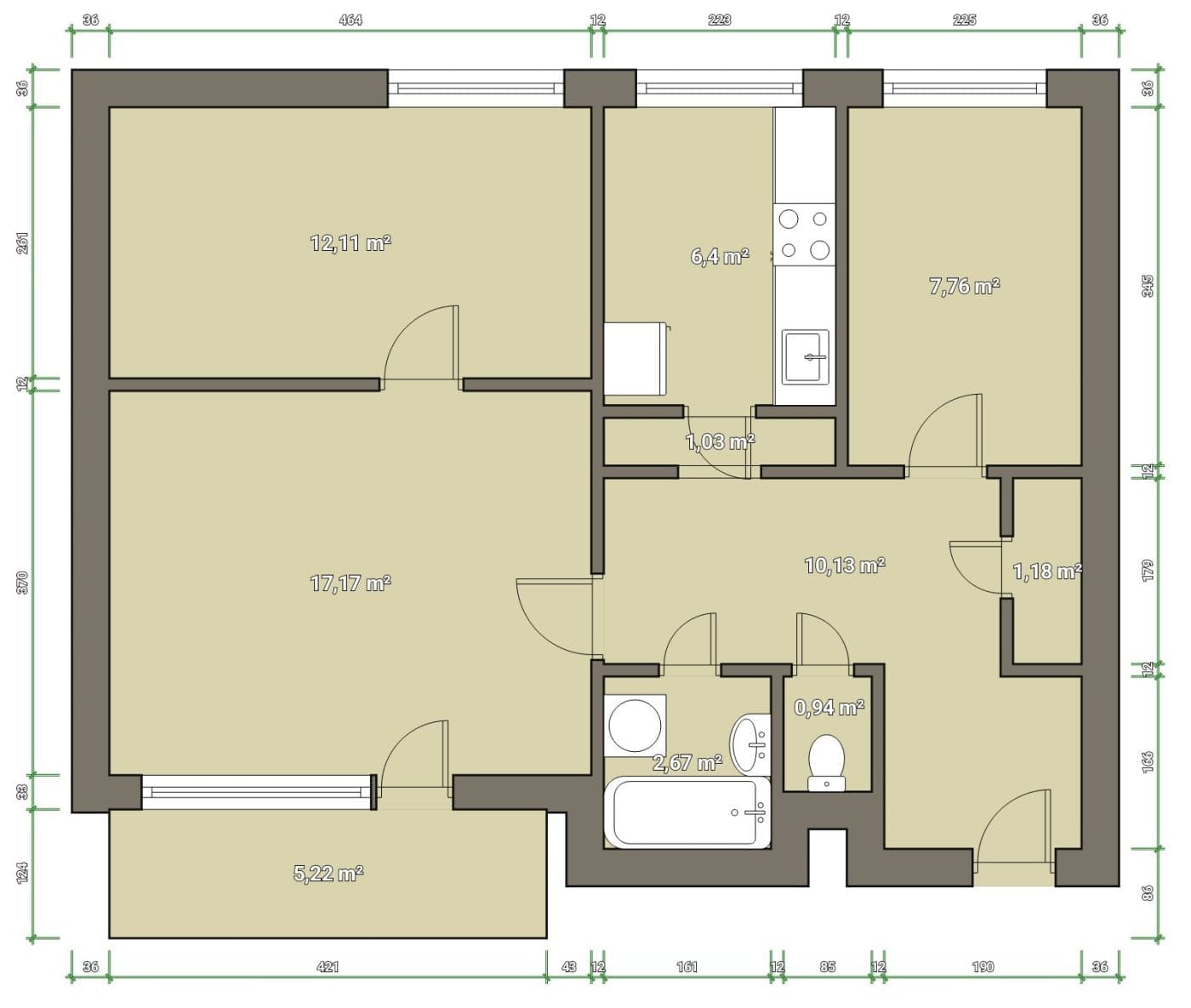 •Praktická dispozice 3+1 s dostatkem úložného prostoru
